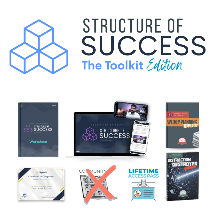 Get the Structure of Success today. Go through the entire course, use the planning templates, and join the community. If, by the end of 14 days, you don’t feel you have a radically clearer and more actionable plan for your life, simply send an email to support@momekh.com for the refund. We will refund 100% of your investment.